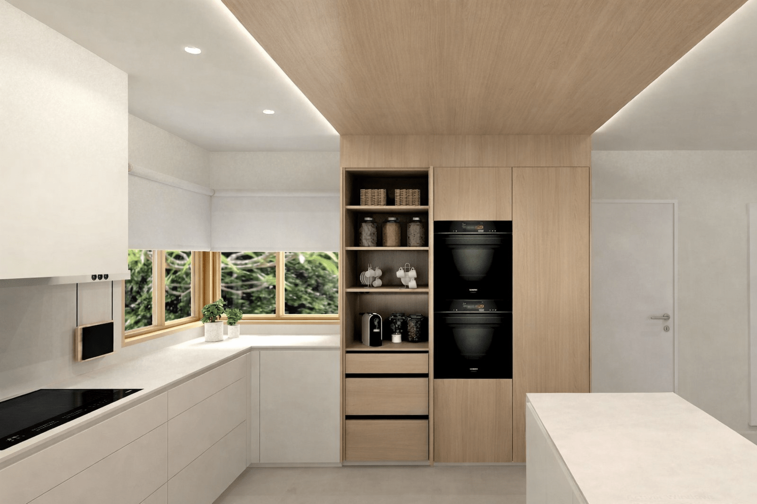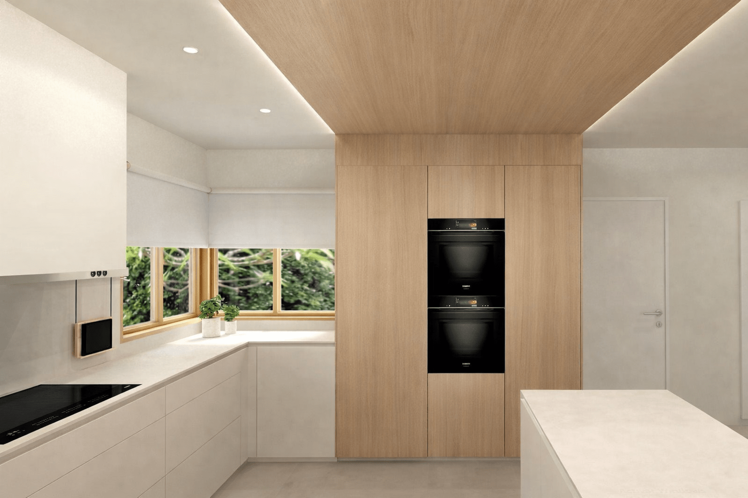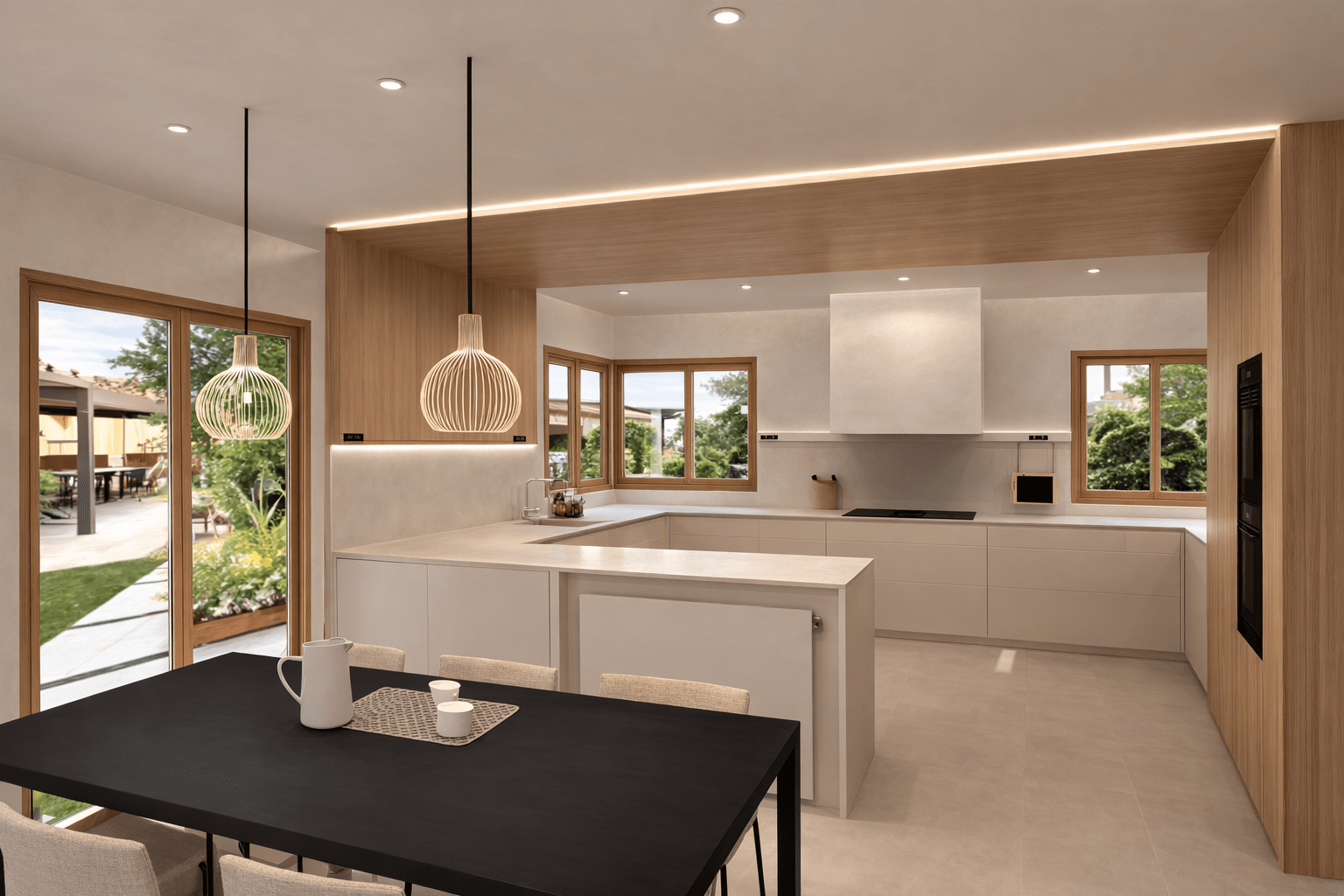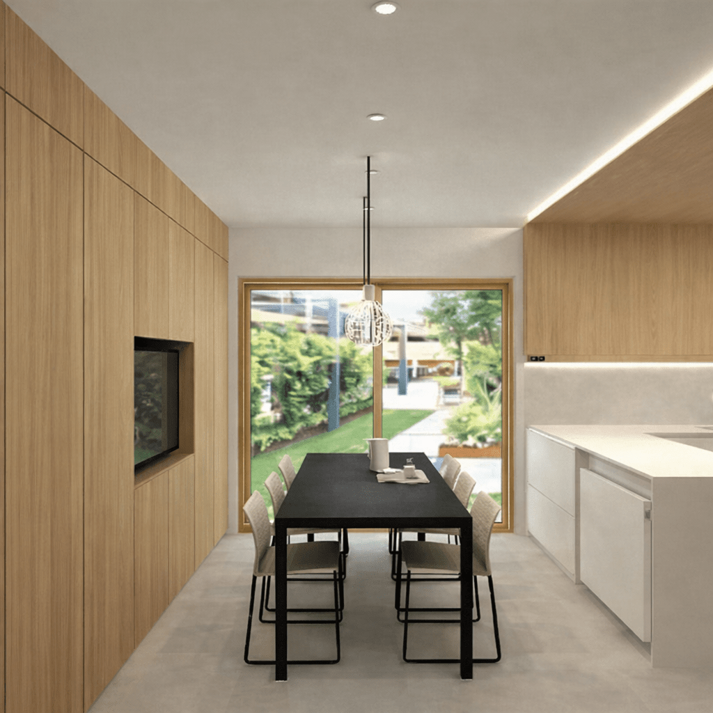 Desarrollamos este proyecto de interiorismo de una cocina de líneas depuradas en Vilanova i la Geltrú, priorizando la luz natural, la pureza formal y la integración con el entorno exterior. Concebimos la cocina como un espacio abierto, funcional y elegante, donde predominan los tonos claros, los acabados lisos y materiales de alta calidad, seleccionados para garantizar durabilidad y coherencia estética.