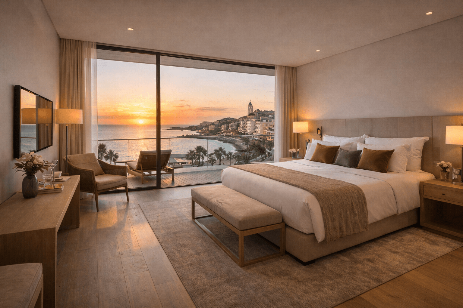 El diseño prioriza las vistas al mar, la luz natural y una organización funcional de los espacios, con una estética sobria y luminosa que refuerza el carácter mediterráneo del proyecto.