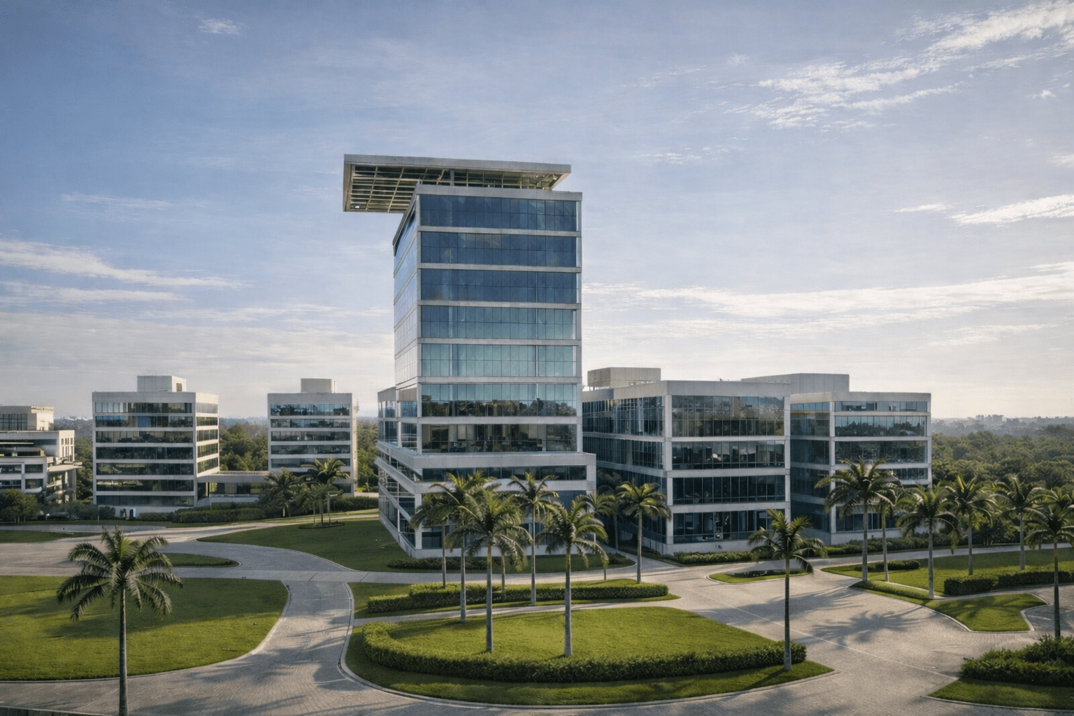La estructura principal destaca por su volumen elevado y fachada transparente, que permite maximizar la entrada de luz natural y enmarcar las vistas panorámicas.