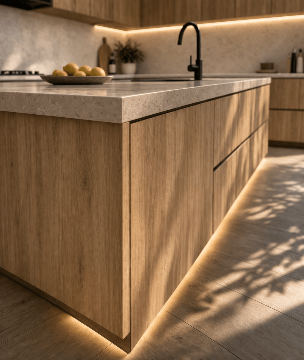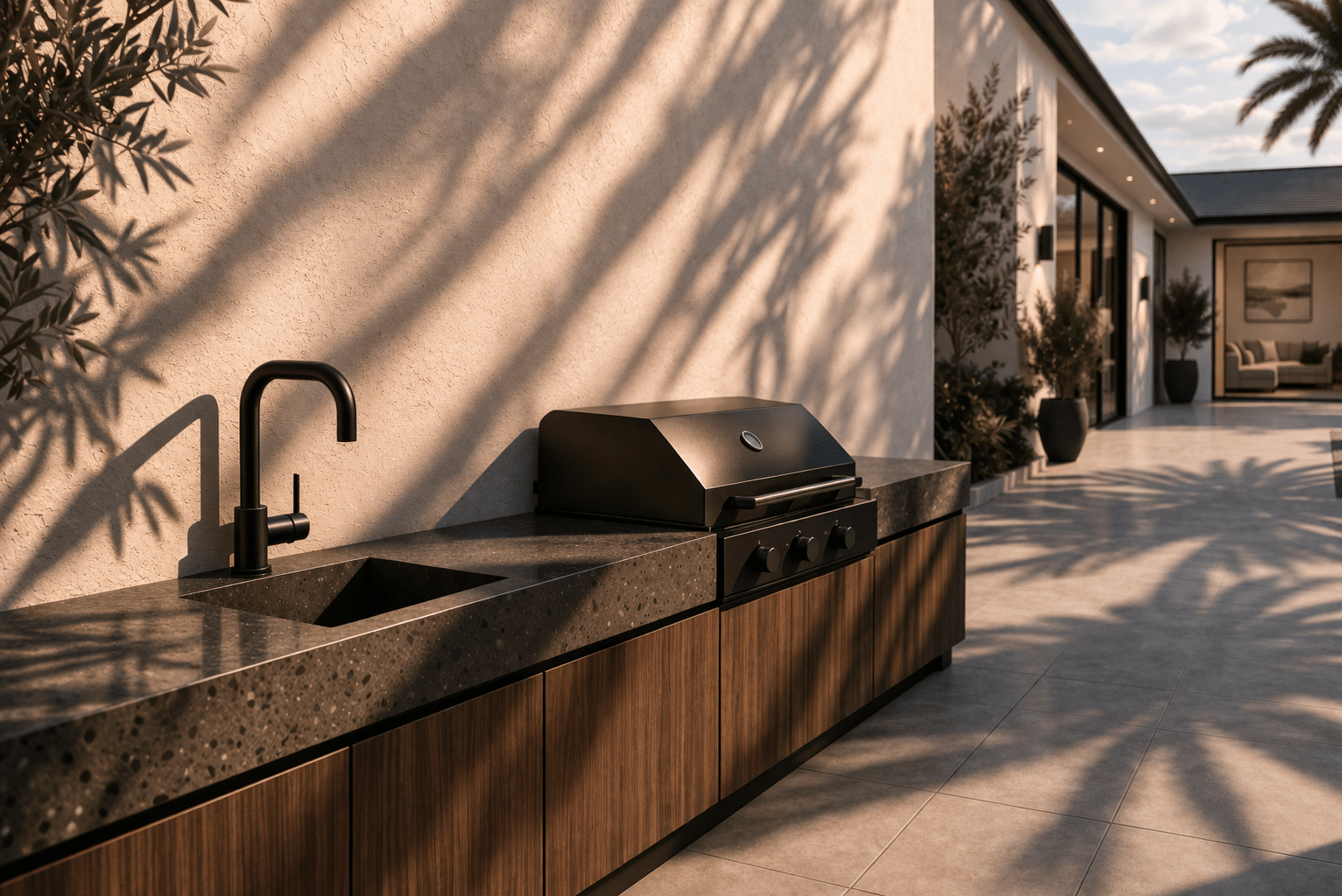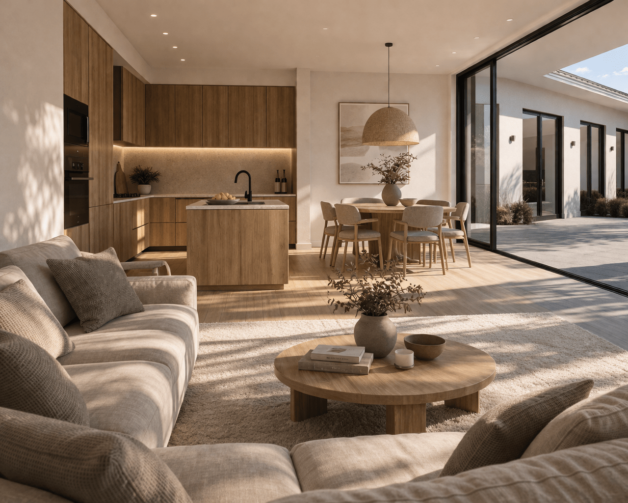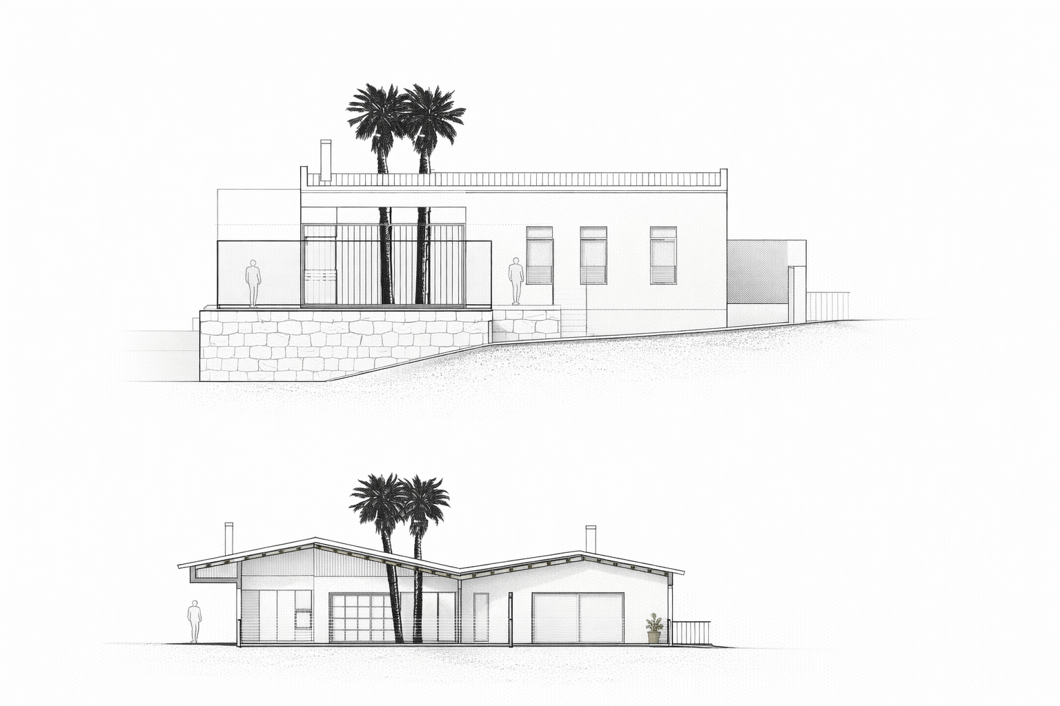 El verdadero corazón del proyecto es su patio interior con palmeras, un espacio que organiza la casa y conecta visualmente las distintas estancias. Este patio actúa como un oasis privado, llenando de luz natural el interior y generando una atmósfera serena y sofisticada, donde la vegetación se convierte en protagonista.